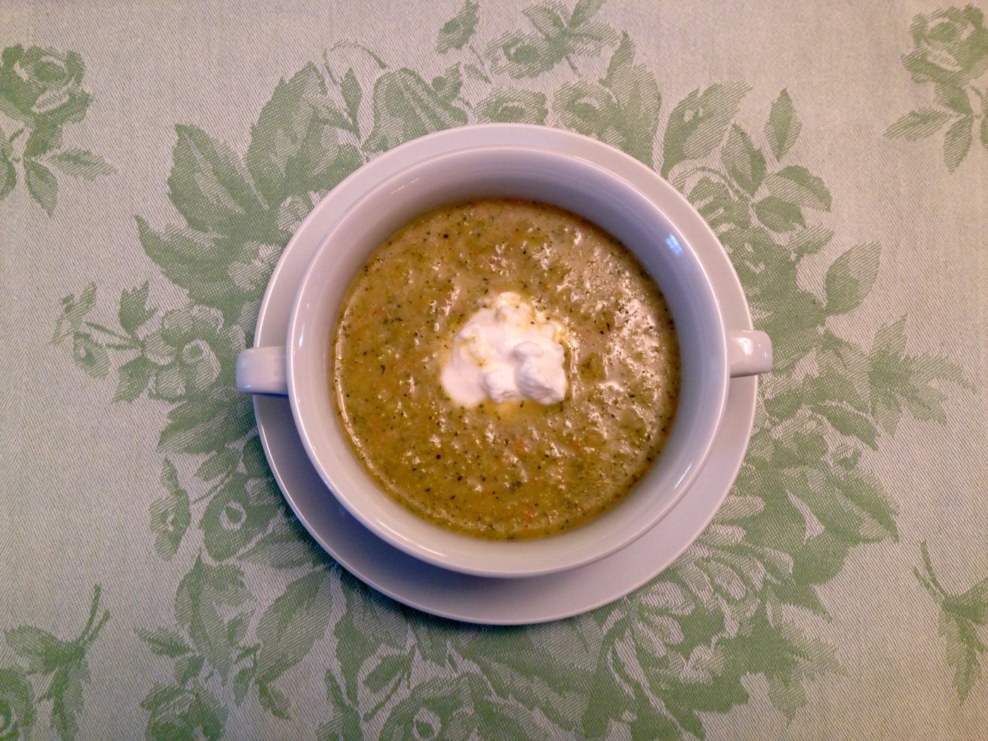 For this week’s Dish, as usual, I have another soup recipe for you all. My office at work is perpetually freezing—two of my co-workers actually have mini space heaters under their desks—and so I’ve found that warm soup is a warm, welcome reprieve during the day. For lunch this week, I made my version of a healthy cream of broccoli soup that I enrich with nonfat Greek yogurt.